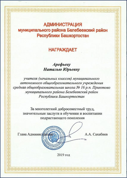 Я, Арефьева Наталья Юрьевна, учитель МАОУ СОШ №16 р. п. Приютово муниципального района Белебеевский р-н Республики Башкортостан, рада приветствовать Вас на своем сайте. При его создании я преследовала несколько целей. Одна из них - это формирование собственного электронного портфолио профессионального развития. Кроме того, я постаралась наполнить его страницы полезным учебным и методическим материалом, разработанным мною за последние годы. Сайт содержит множество разделов, информация в которых периодически обновляется и дополняется по мере моего и участия моих учеников в самых разнообразных мероприятиях.